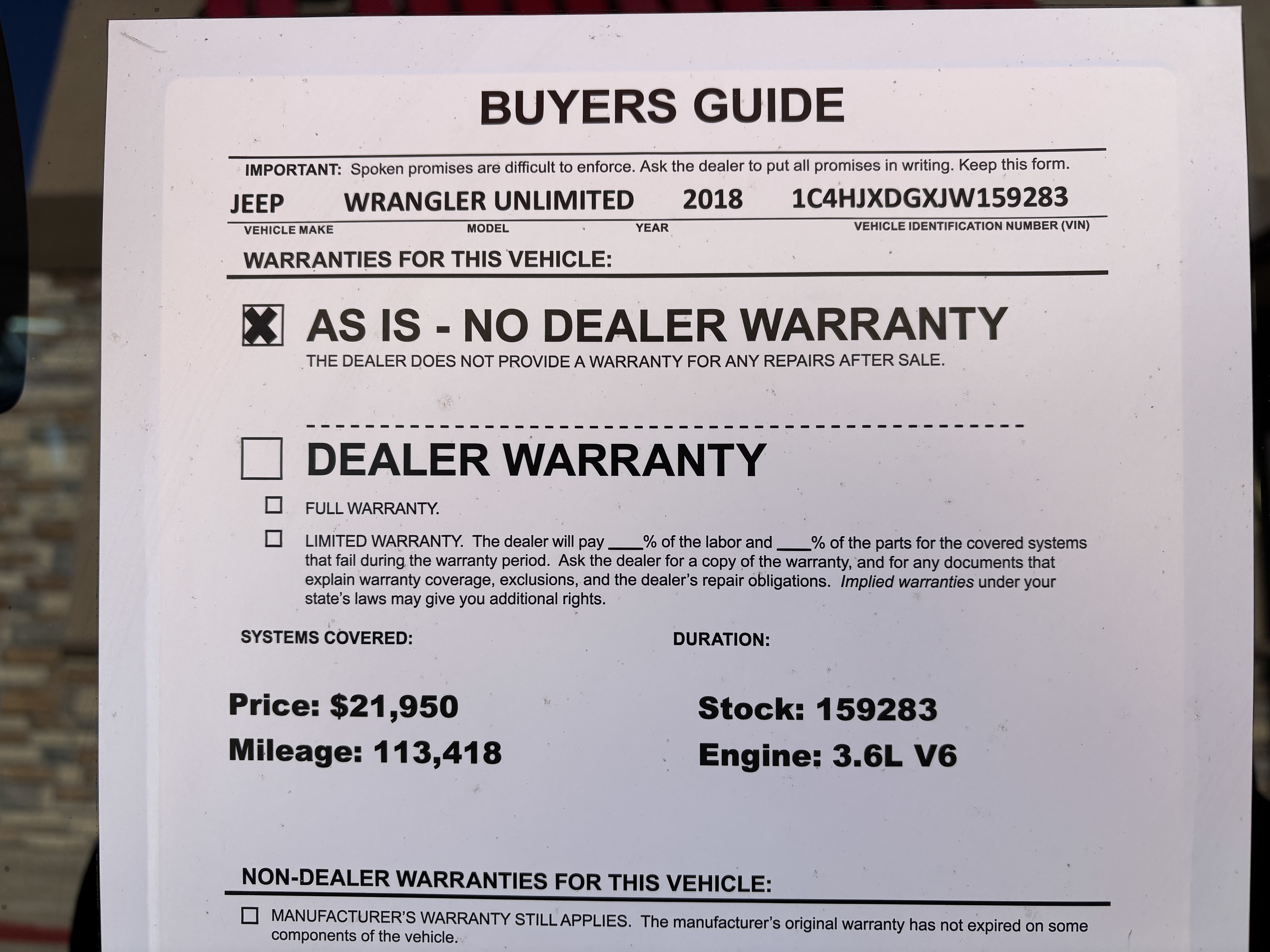 - VIN: 1C4HJXDGXJW159283